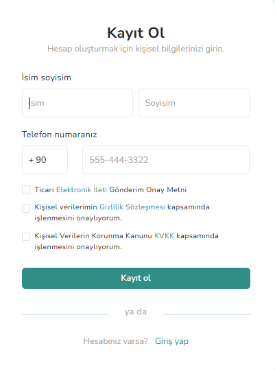 Hesabınız yok mu? Hemen Kayıt Olun